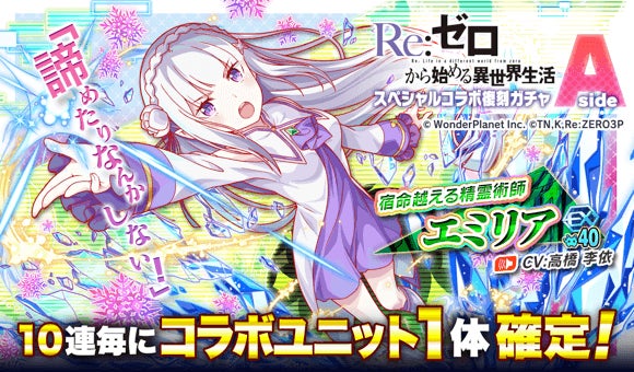 モバイルゲーム事業を行うワンダープラネット株式会社(本社:愛知県名古屋市、代表取締役社長CEO:常川友樹、東証グロース:証券コード4199、以下当社)は、iOS/Android端末向けに配信中の『クラッシュフィーバー』において、2025年3月31日(月)より、『クラッシュフィーバー』×『Re:ゼロから始める異世界生活』コラボの開催が決定したことをお知らせいたします。