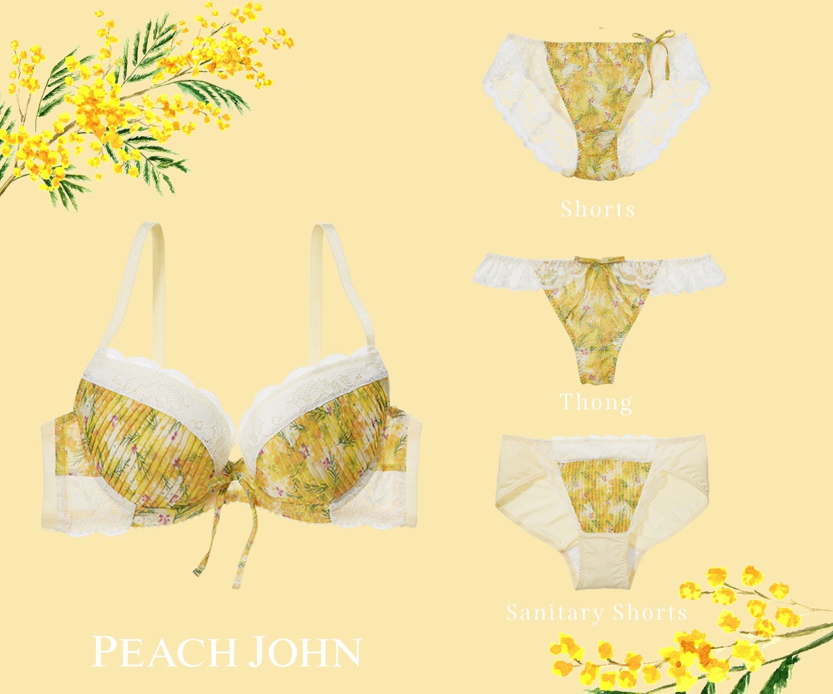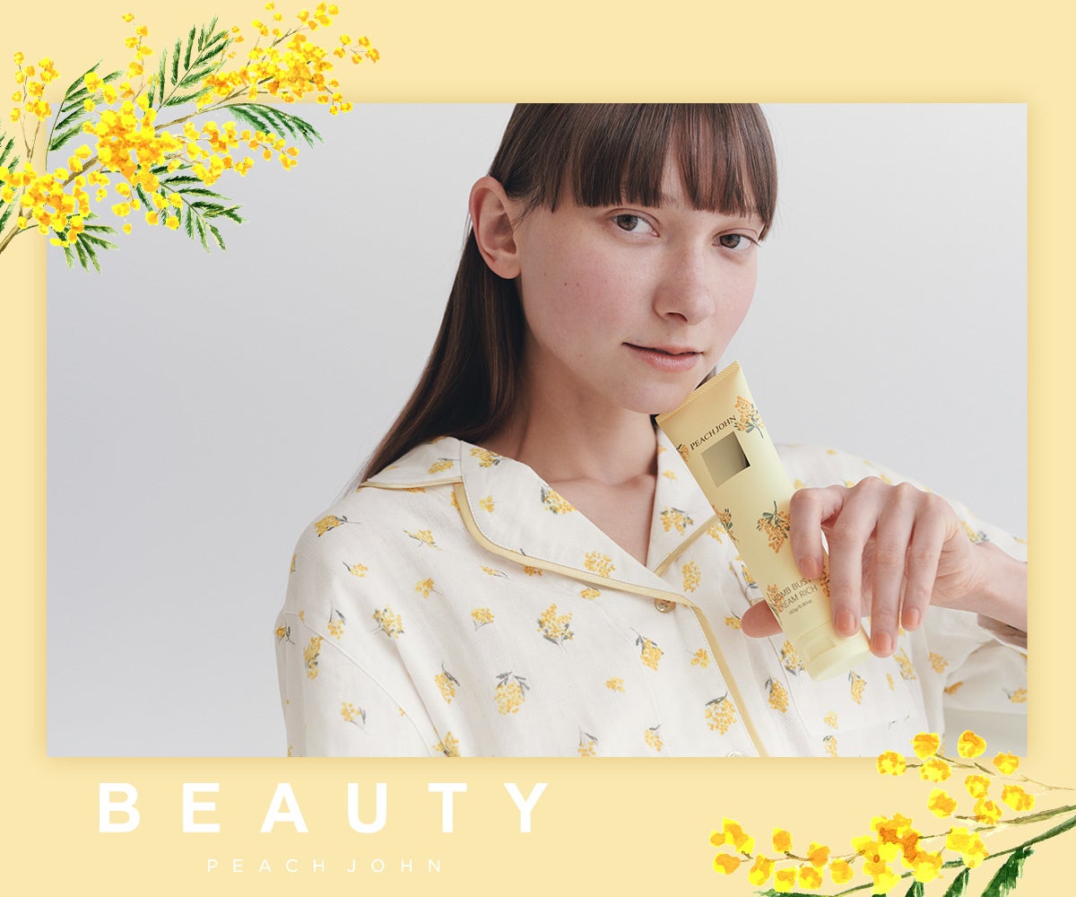 株式会社ピーチ・ジョン(本社:東京都港区 / 代表取締役社長:杤尾学)は、春を感じるミモザ柄のブラやパジャマ、PEACH JOHN BEAUTYのパーツケアアイテムを発売しました。