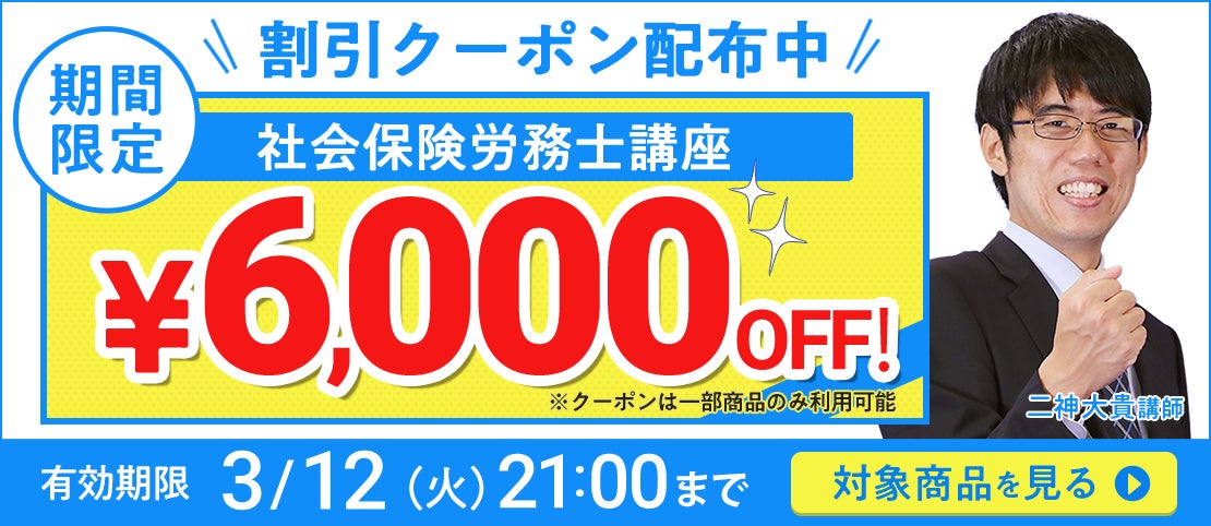 【期間限定】社労士講座 誰でも使えるクーポン 配布中!