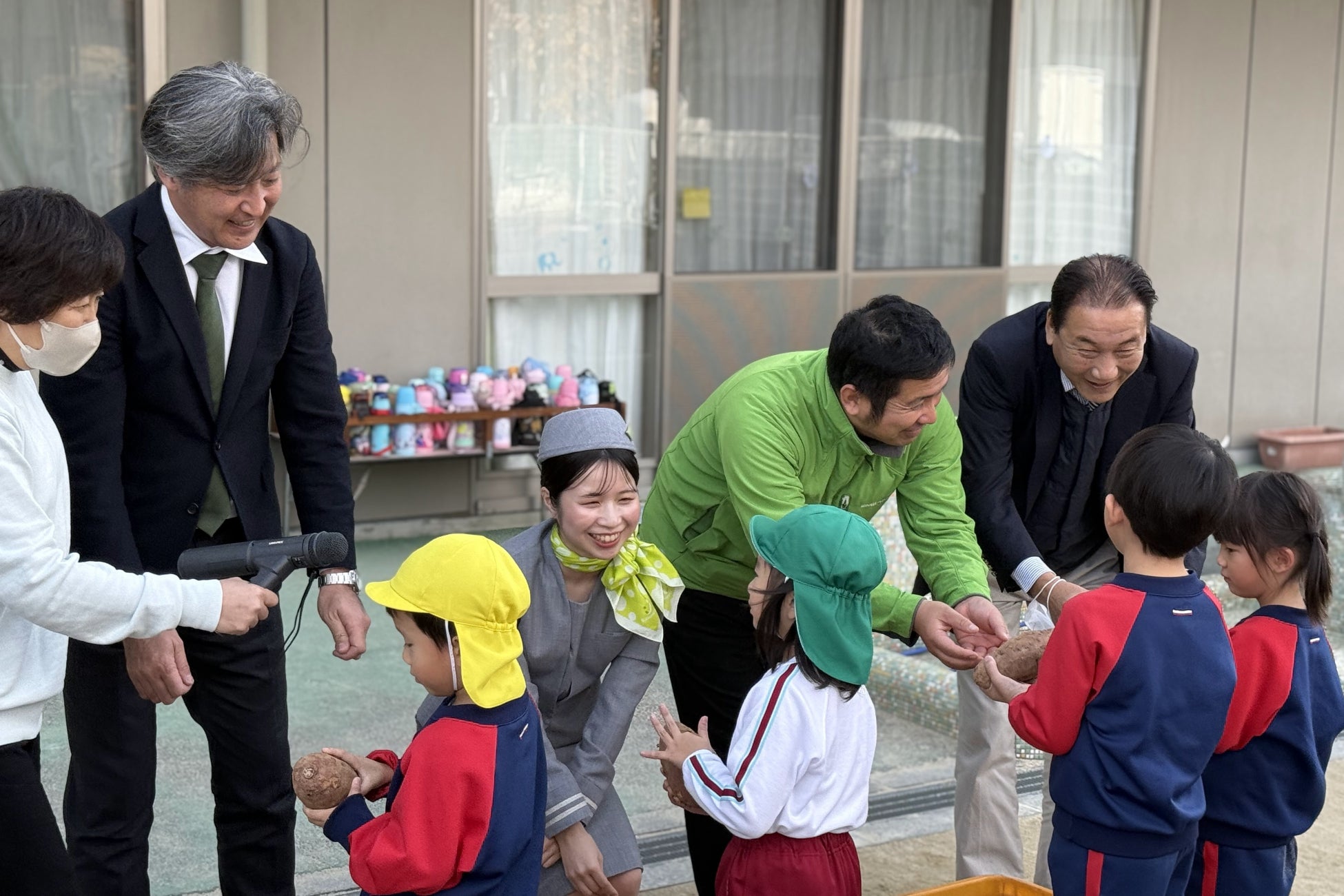 当社は、2023年5月に株式会社イノP(本社:熊本県宇城市 代表取締役:宮川 将人)と共に地域の発展に寄与することを目的として包括的連携協定を締結し、その一環として 「ソラシドエコファーム」を開園しました。日頃から地域の方々に支えていただいていることへの感謝の想いから、園児の皆さんが植え付けや収穫のお手伝いをしてくださった宇城市の 「みすみ保育園」、イノPの代表取締役・宮川氏とのご縁のある熊本市内の「仁愛幼育園」「ケアホーム蓮台寺」に寄贈しました。