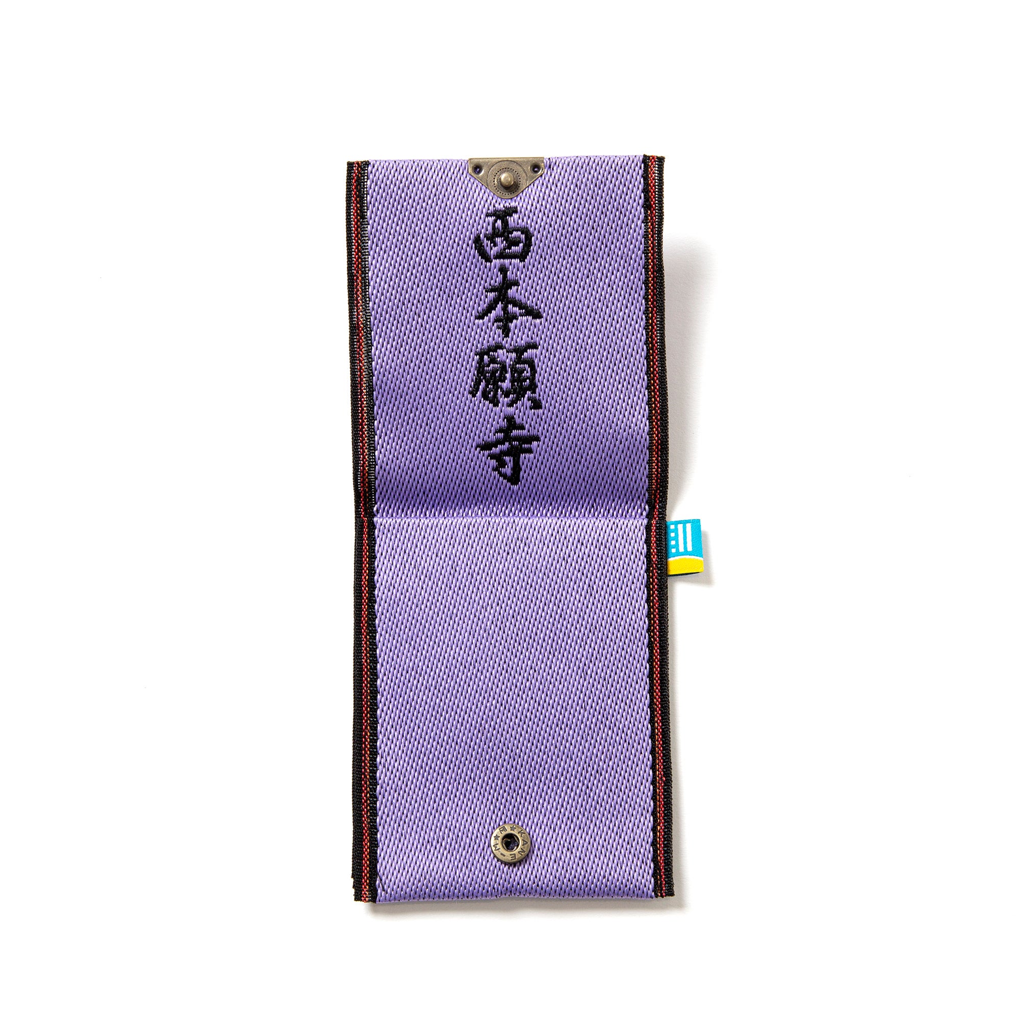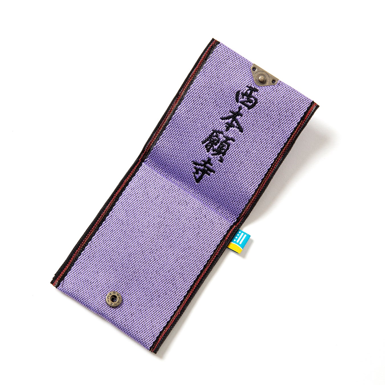 西本願寺を連想させる“藤色”をベースとし、内側に“西本願寺”の文字を入れた<髙田織物>のカード&コインウォレット。(税込990円)