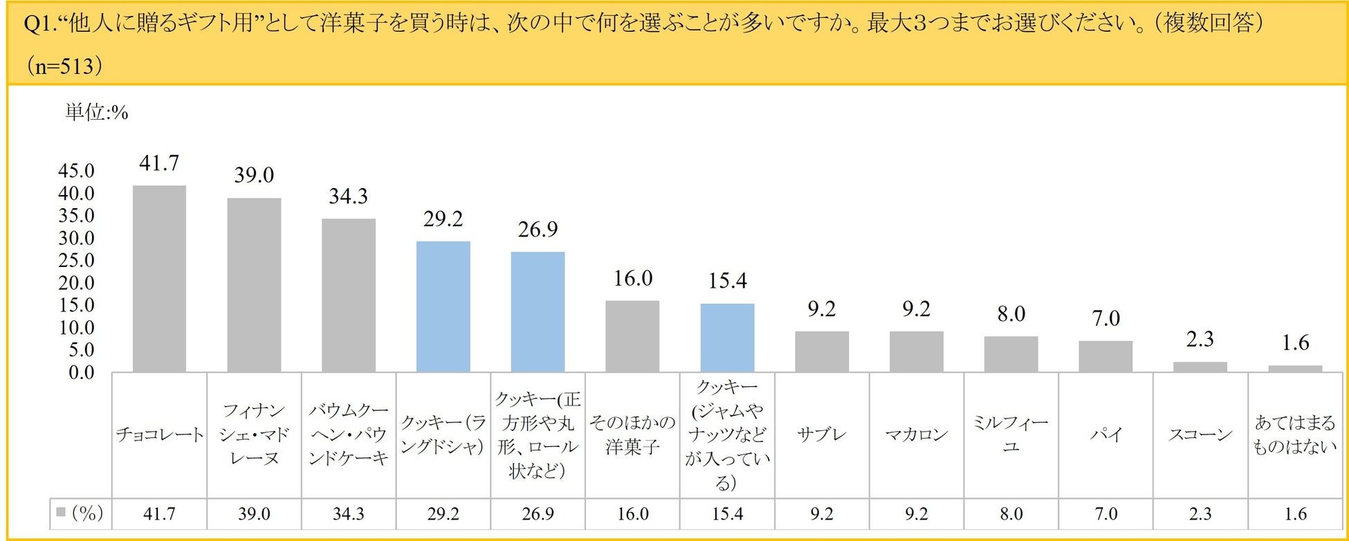 「ギフトとして選ぶ洋菓子」意識調査結果発表!ギフトとして選ぶ洋菓子に、ラングドシャクッキーを選ぶ人は約3割