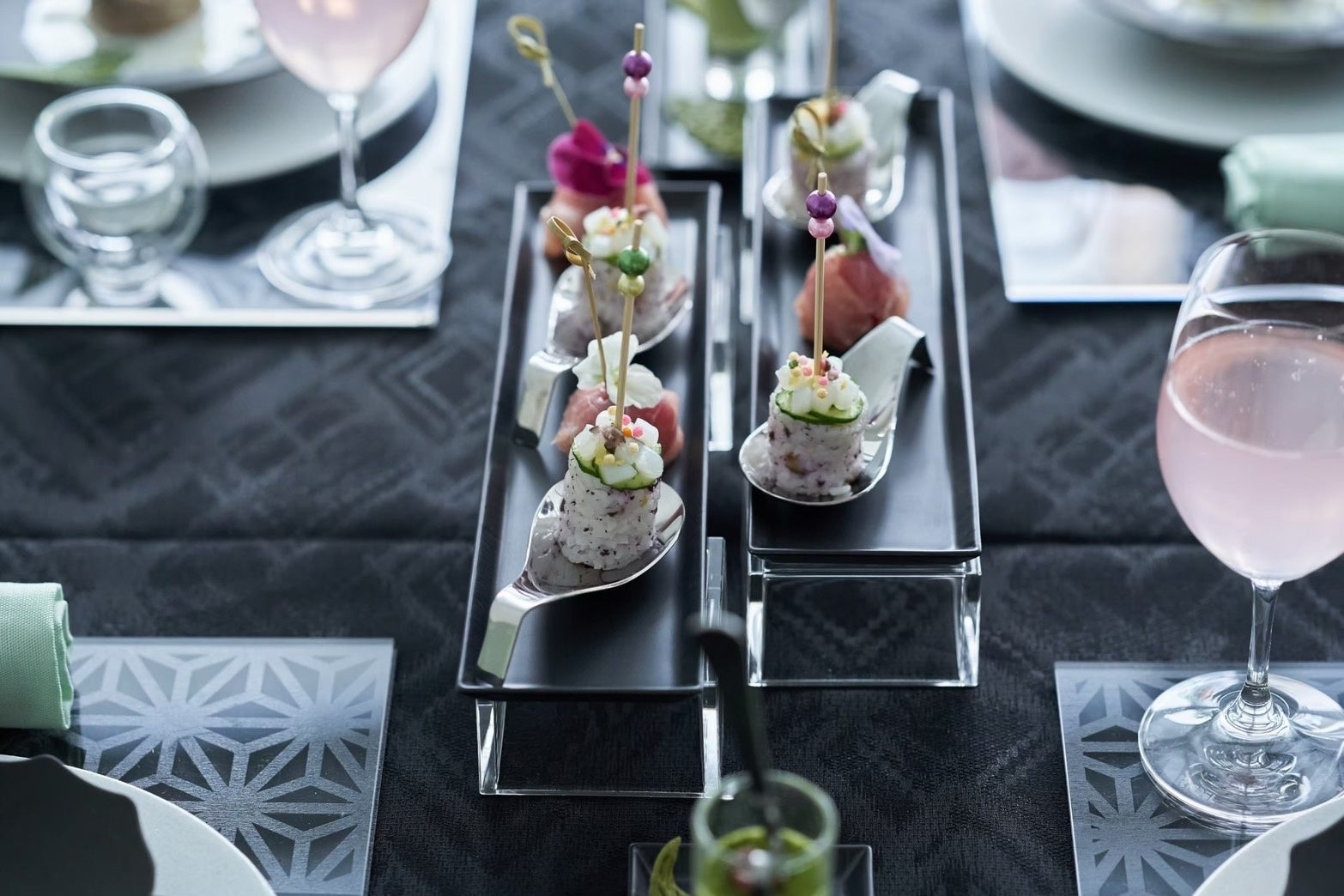 アイデア次第でアレンジ自在。季節を衣替えするようにクロスを変えたり、器の使い方は無限です。和のエッセンスを取り入れつつ、モダンでスタイリッシュなテーブルコーディネートとおもてなしメニューを楽しめるこのテーマで、ご自身だけの和モダンスタイルをつくることができます。