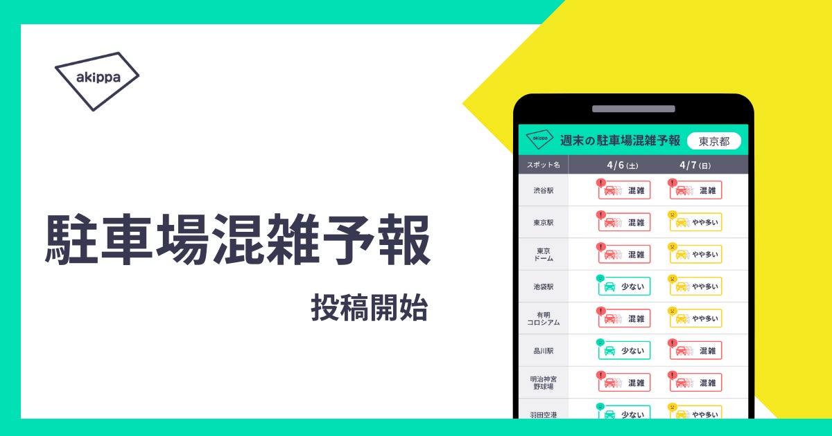 駐車場予約アプリ「アキッパ(akippa)」(以下、アキッパ)を運営するakippa株式会社(代表取締役社長 CEO:金谷元気)は、2024年4月3日(水)より「駐車場混雑予報」をSNSにて開始します。