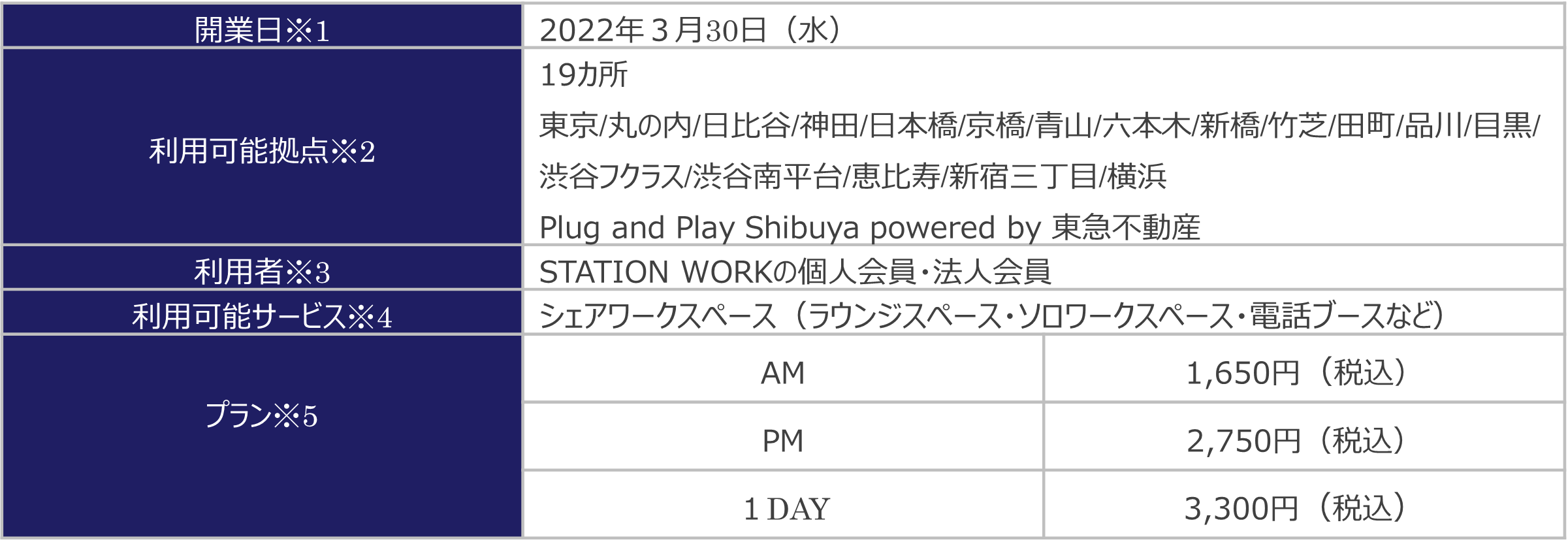 ※3個人会員の登録にはSTATION WORK専用WEBサイト(https://www.stationwork.jp/)からの登録が必要です。法人会員登録にはJR東日本との法人契約が必要です。
