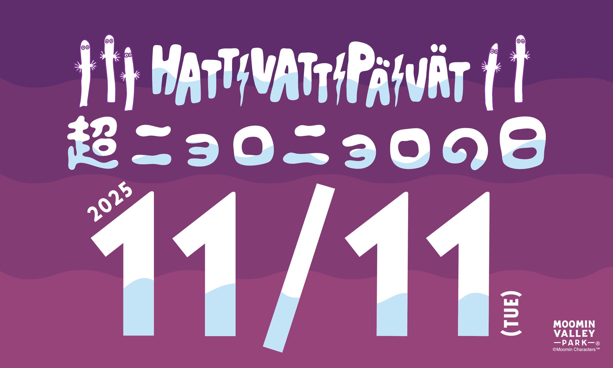 株式会社ムーミン物語(本社:埼玉県飯能市、代表取締役社長:望月 潔)は、「1」がミステリアスないきもの「ニョロニョロ」の形に似ていることから毎月11日を『ニョロニョロの日』と定め、来園者へのニョロニョログッズプレゼント、限定アートラテ販売、アーケードゲーム「ニブリングの店」にてボール1個増量を実施しています。今年はさらに11月11日(火)を『超ニョロニョロの日』、11月8日(土)~11月11(火)の4日間を『超ニョロニョロフェスタ』とし、ニョロニョロにちなんだ様々なイベントを開催いたします。