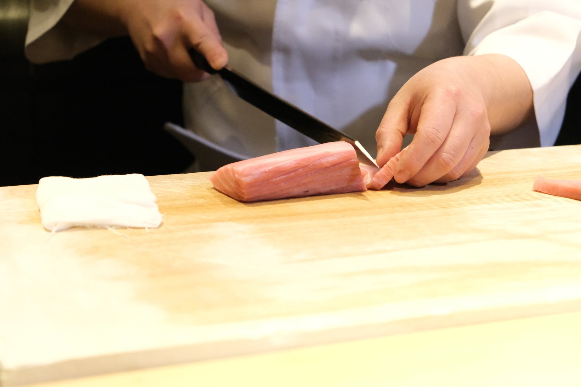 寿司職人歴は20年以上で、チェーン店、個人店、老舗、ホテルなどさまざまな店舗で経験を積み、現在は飲食塾にて3カ月という短期間でプロの寿司職人を育成。
