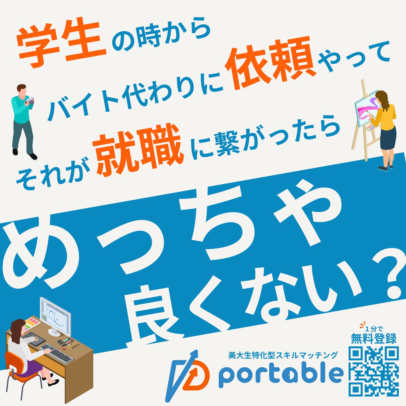 株式会社Portableは2023年4月に設立され、美大生特化型スキルマッチングサービス「Portable」を展開しています。このサービスは、企業と学生をつなぎ、産学連携プロジェクトやクリエイティブな仕事の機会を提供するクラウドソーシングプラットフォームです。