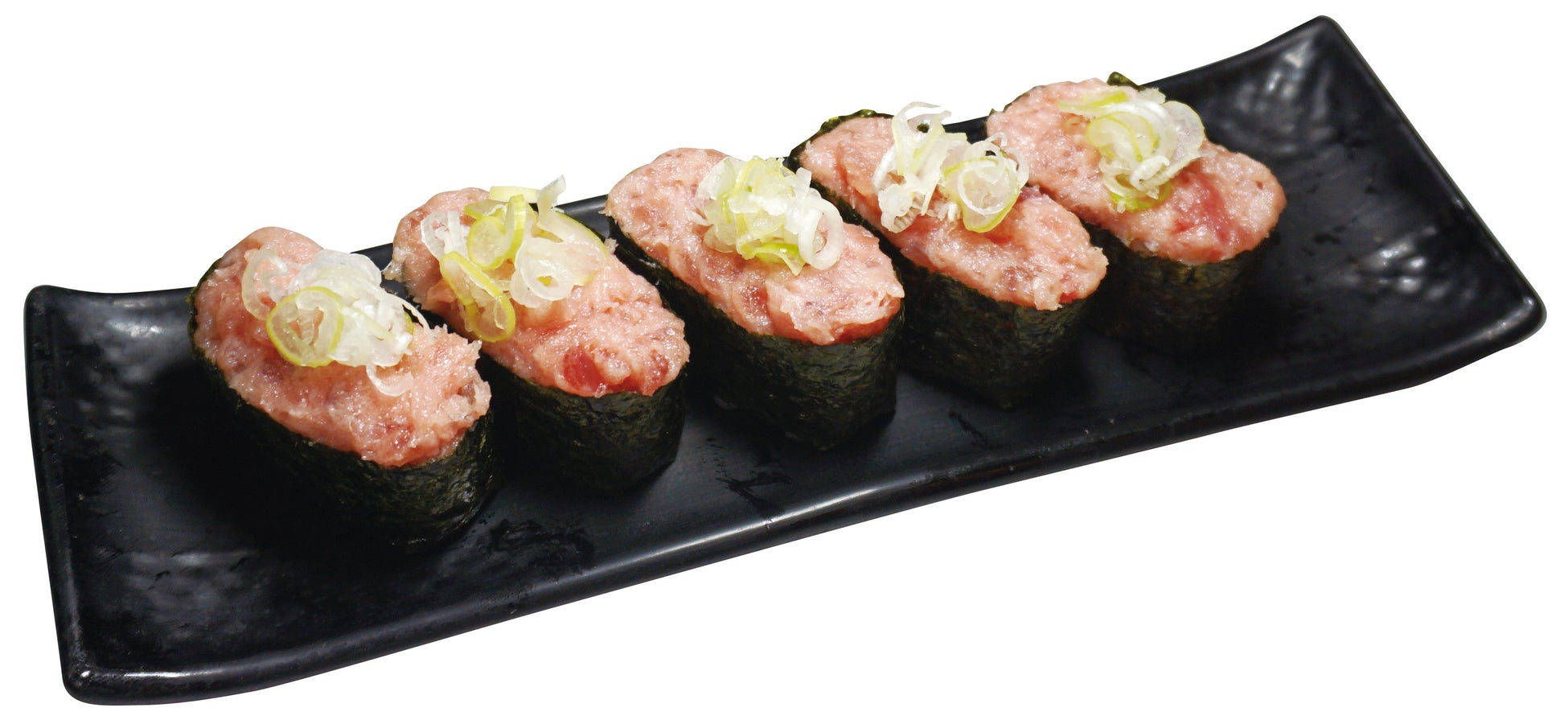 まぐろ、いか、びんちょうまぐろ天身、えんがわ、蒸し海老ランプフィッシュキャビアのせ、甘海老、サーモン、ねぎとろ、いくら、ローストビーフ ランプフィッシュキャビアのせ、厚焼き玉子
