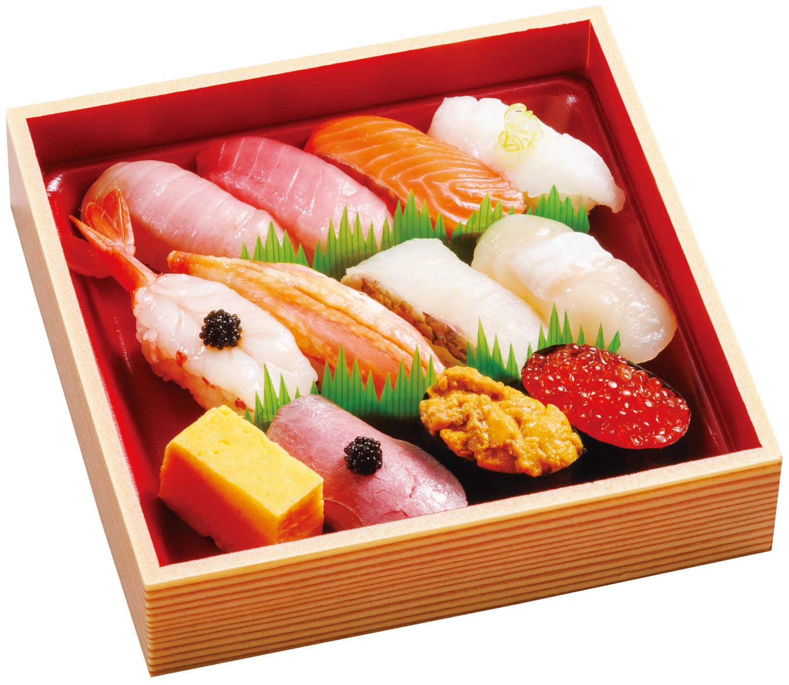 1967年創業以来1貫1貫、真心を込めてお寿司を握り続けてきた「平禄寿司」では、12月のクリスマスシーズンにピッタリの「お寿司」のスペシャルセットを12月20日(土)~25日(木)まで6日間限定でご用意いたしました。まぐろ、いか、びんちょうまぐろ天身など11種類のお寿司を盛り込んだ「天使の宴」(5人前[55貫]:わさび抜き)。12種類のお寿司を盛り込んだ「聖夜の鐘」(3人前[37貫]:わさび抜き)に、お1人様用の「サンタの贈り物」(本ずわいがに等12種類)など6種類のスペシャルメニューでございます。また、12月21日(日)までに「天使の宴」「聖夜の鐘」「サンタの贈り物」のいずれかをご予約をいただきますと割引券などの予約特典もございます。美味しさとお得感の詰まった「平禄寿司のクリスマス限定セット」をぜひ、お楽しみください。