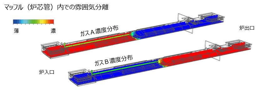 圧粉磁心の磁気焼鈍などにおいて、潤滑剤等の揮発物の流れを制御し、低温部への再凝集を抑制します。