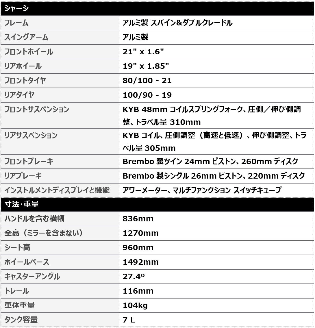 リンケージシステムは、安定したサスペンション性能を確保し、ミッドストロークコントロール、シャシーバランス、コーナリングの安定性の向上を実現するようにチューニングされています。この高性能セットアップは、KYB 48mm AOSコイルフォーク、鍛造および機械切削加工された7075-T6アルミニウムトリプルクランプ、および3ウェイピギーバックコイルリアショックによって完成されます。