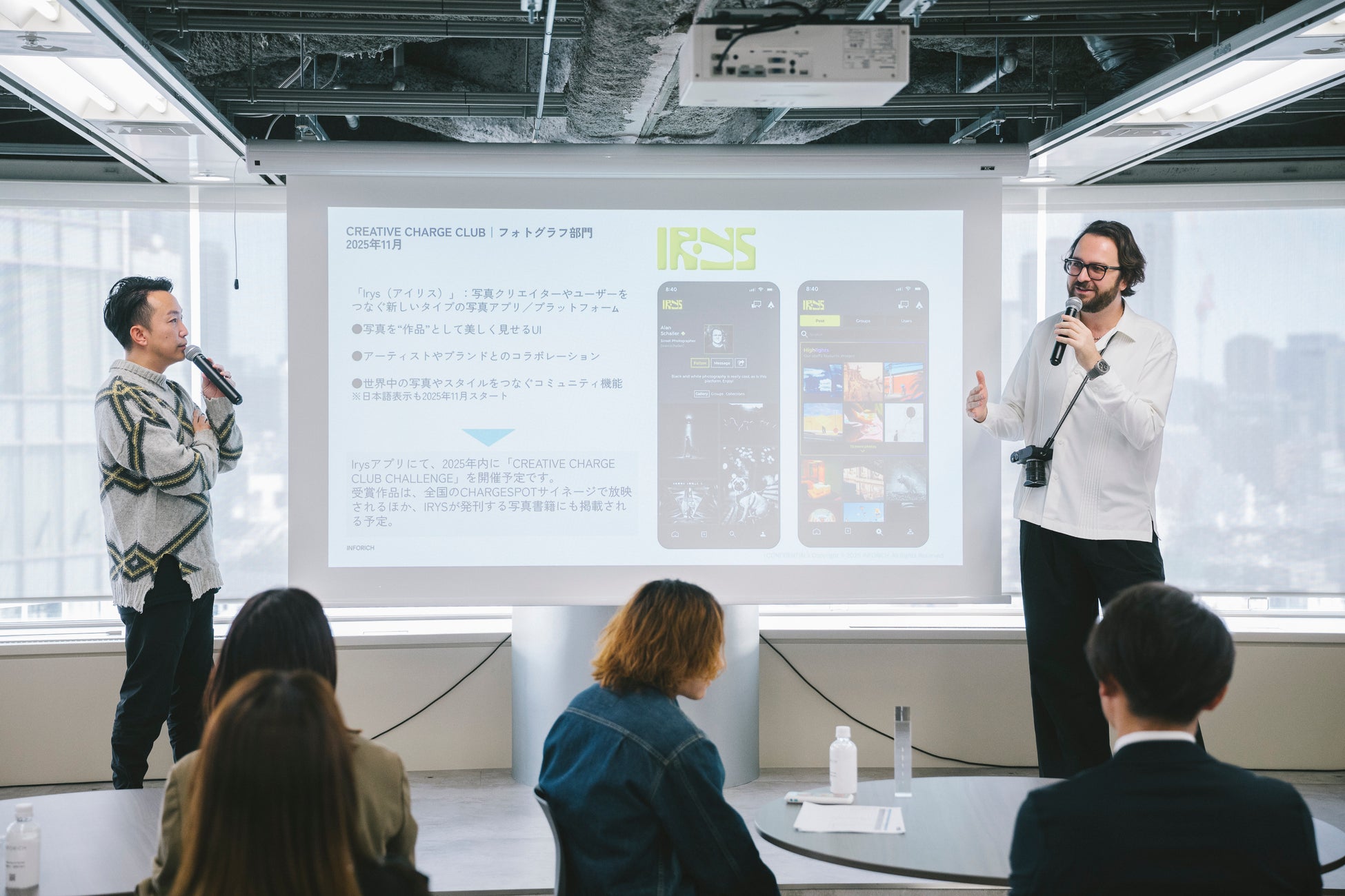モバイルバッテリーのシェアリングサービス「CHARGESPOT™(チャージスポット)」を運営する株式会社INFORICH(本社:東京都渋谷区、代表取締役 Group CEO:秋山 広宣、以下「INFORICH」)は30歳以下のアーティスト・クリエイターを対象とした創作活動を支援するプログラム「CREATIVE CHARGE CLUB CHALLENGE 2025」の授賞式を開催いたしました。本イベントでは、現代美術家の西尾美也氏をゲストに迎え、秋山とのトークセッションを実施。若いアーティストに向けて創作の機会を提供し続けること、そしてプラットフォームを通じて新しい表現や出会いを生み出していくことの重要性が語られました。また、写真クリエイターやユーザーをつなぐ写真アプリ「Irys(アイリス)」と提携し、フォトグラフ部門として年内にフォトコンテストを開催することを発表いたしました。Irysとの協業により、CHARGESPOTは写真というビジュアル表現の分野においてもクリエイターの創作活動を支援し、日常の中にアートを届ける取り組みをさらに拡大してまいります。今後もモバイルバッテリーシェアリングというインフラを通じて、アート、音楽、写真など多様な創作分野のクリエイターを支援するプラットフォームとして進化を続けます。