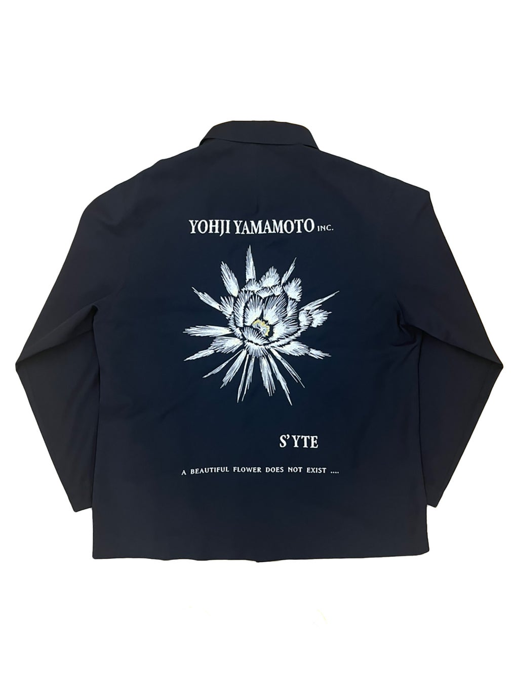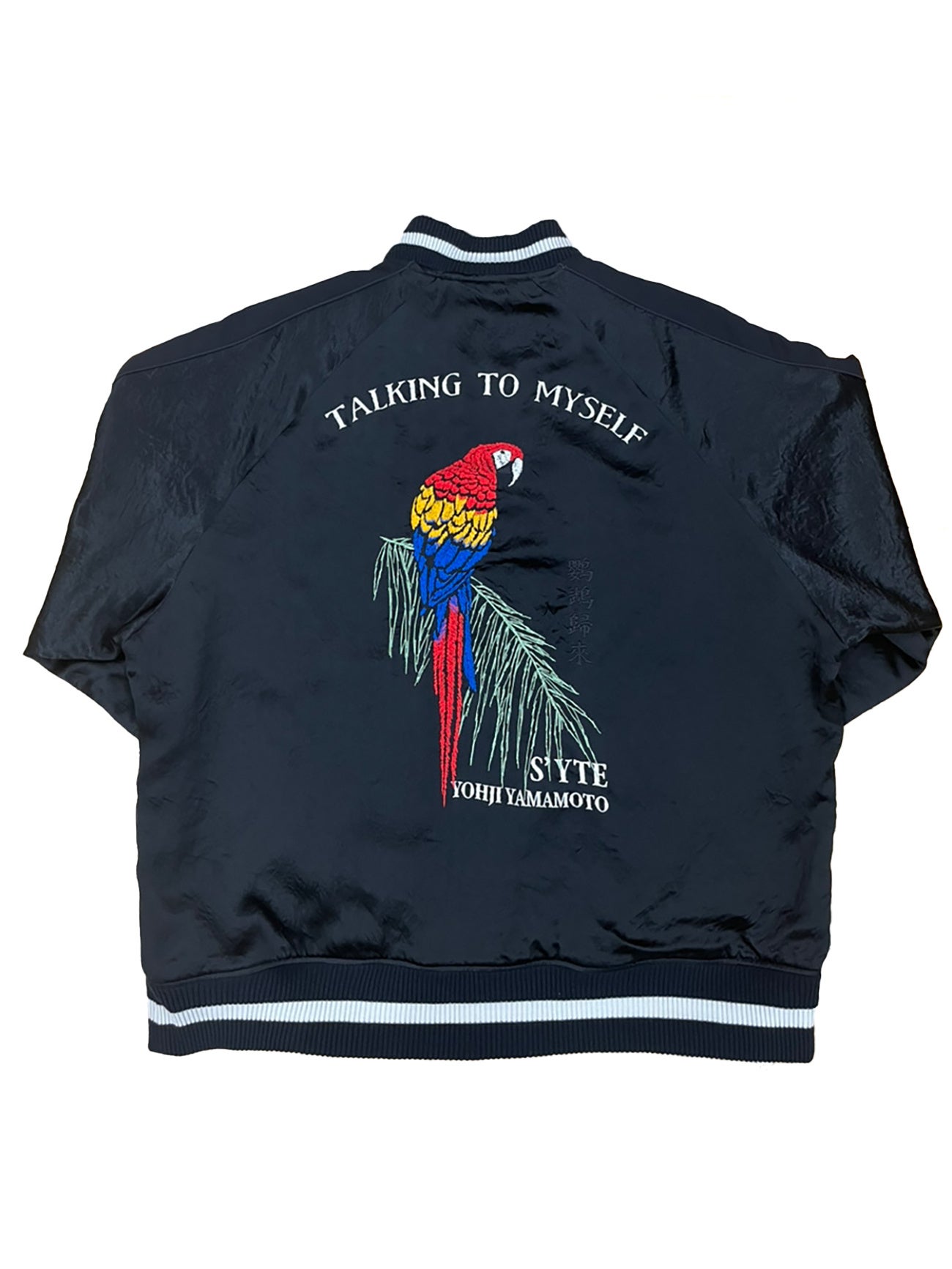 続くS’YTE では、新作グラフィックプリントTシャツや、ベストコレクションTシャツに加え、フロントに黒い花の刺繍、バックには中国語で記された「オウム返し」のテキストと共に色鮮やかな刺繍を施したスカジャンや、本POP-UP STORE開催を記念して制作された、両袖に昇り龍、両胸にグースベイ、背中には月下美人の華の刺繍を施したカバーオールジャケットなどのアイテムを発売いたします。