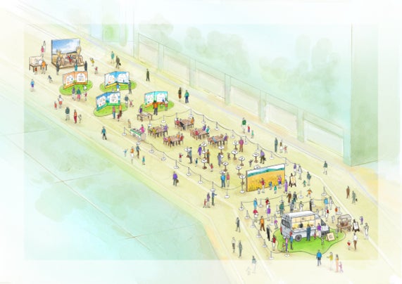 二子玉川駅の改札を出るとすぐにトーストの香りに包まれ、麦畑のパネルが見えてきます。皆さまに小麦に見立てたシールを貼っていただき、全員で大きな和小麦畑を作ります。