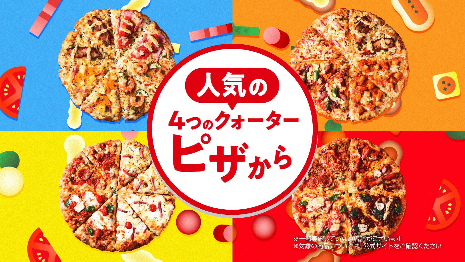 春の新商品「バターチキンカレー」と不動の人気No.1「テリヤキチキン」に、「ポテト&厚切りベーコン」「粗びきソーセージ&アスパラ」の4種類がラインナップ。迷ったときには間違いなしのクォーターピザ。