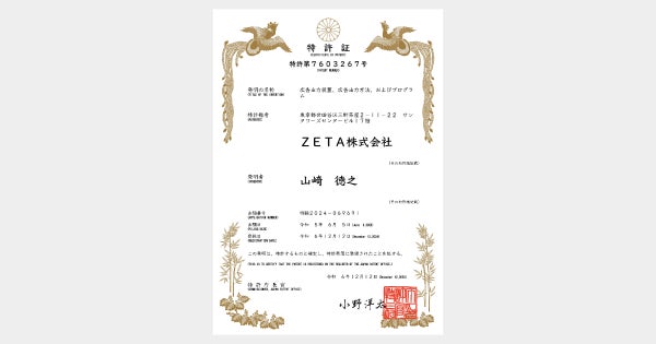 「ZETA AD」が新たに2つ目の特許を取得