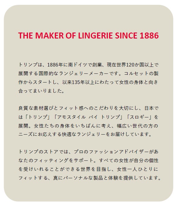 どちらもセンシュアルなレースの美しさにフォーカスしながら、まったく異なる柄&カラーをご用意。デザインで選んでも、着けごこちで選んでも。2つの“天使”の魅力を、ぜひ店頭で。