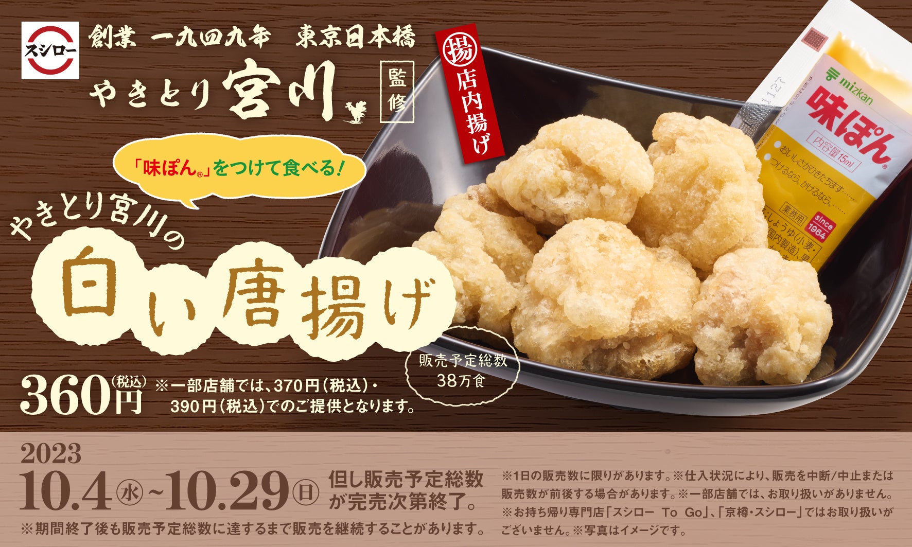 「やきとり宮川」監修の商品がスシローに初登場「やきとり宮川の白い唐揚げ」を期間限定で販売!<10月4日(水)より全国のスシローにて販売開始>