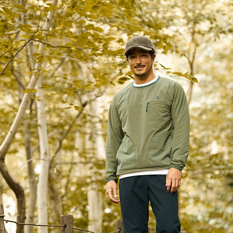 2種類のコーデュラファブリックを使用したルーズフィットタイプのプルオーバー。裏はフリース生地になっており保温性が高く軽く仕上がっています。左胸にはジップポケット、両脇にはパッチポケットがついています。右脇のジップは脱ぎ着しやすくするためだけでなく洋服内の温度上昇も抑えてくれます。