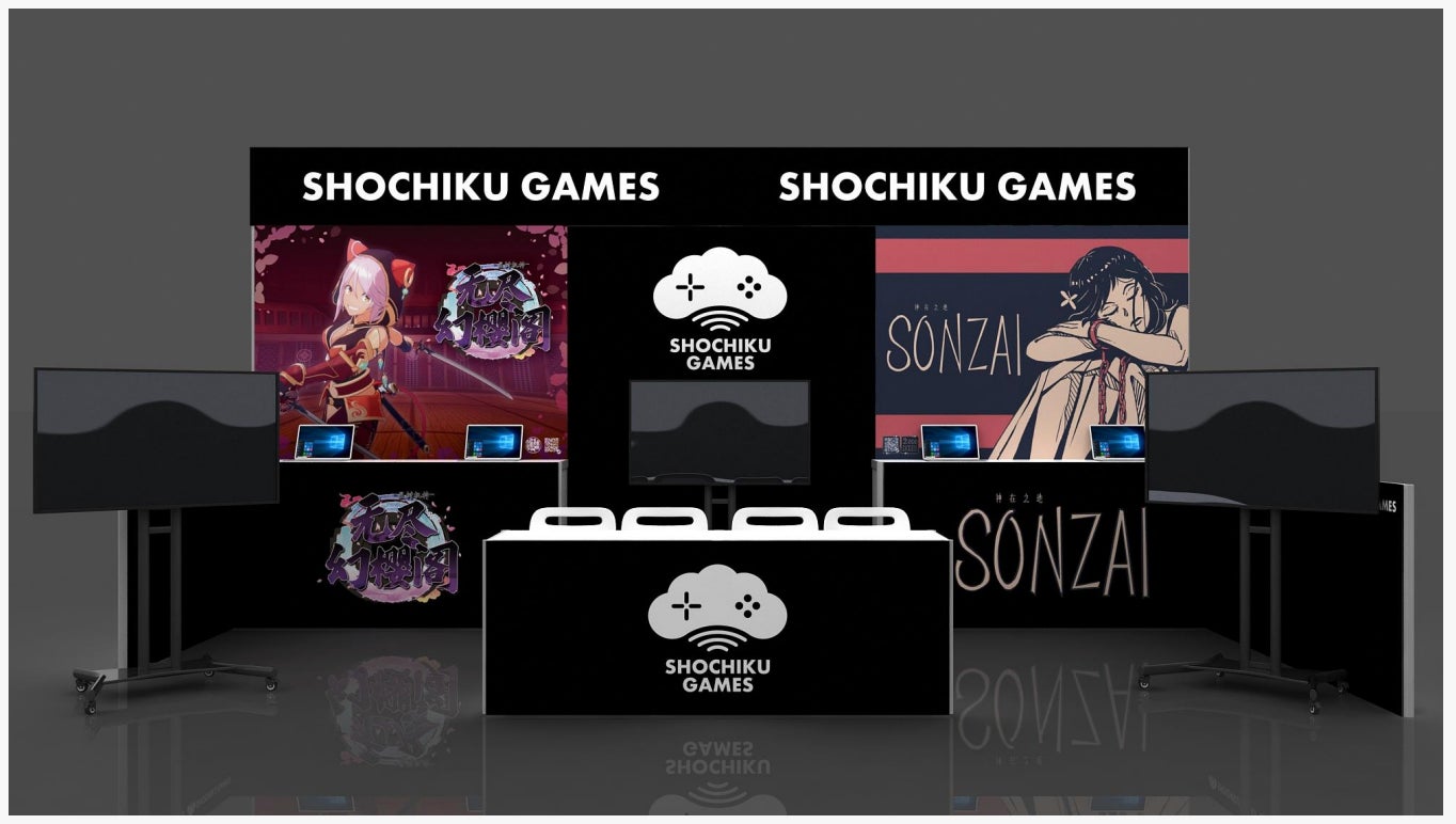 会場では、松竹ゲームズがパブリッシングを担当する2タイトルの最新版を試遊いただけます。爽快コンボが炸裂するド派手なローグライク3Dアクション『夢幻桜楼閣』(むげんおうろうかく)と、連携コンボアクションと完全手書きの美しいスタイルが特徴の新感覚RPG『SONZAI』をお楽しみいただけます。