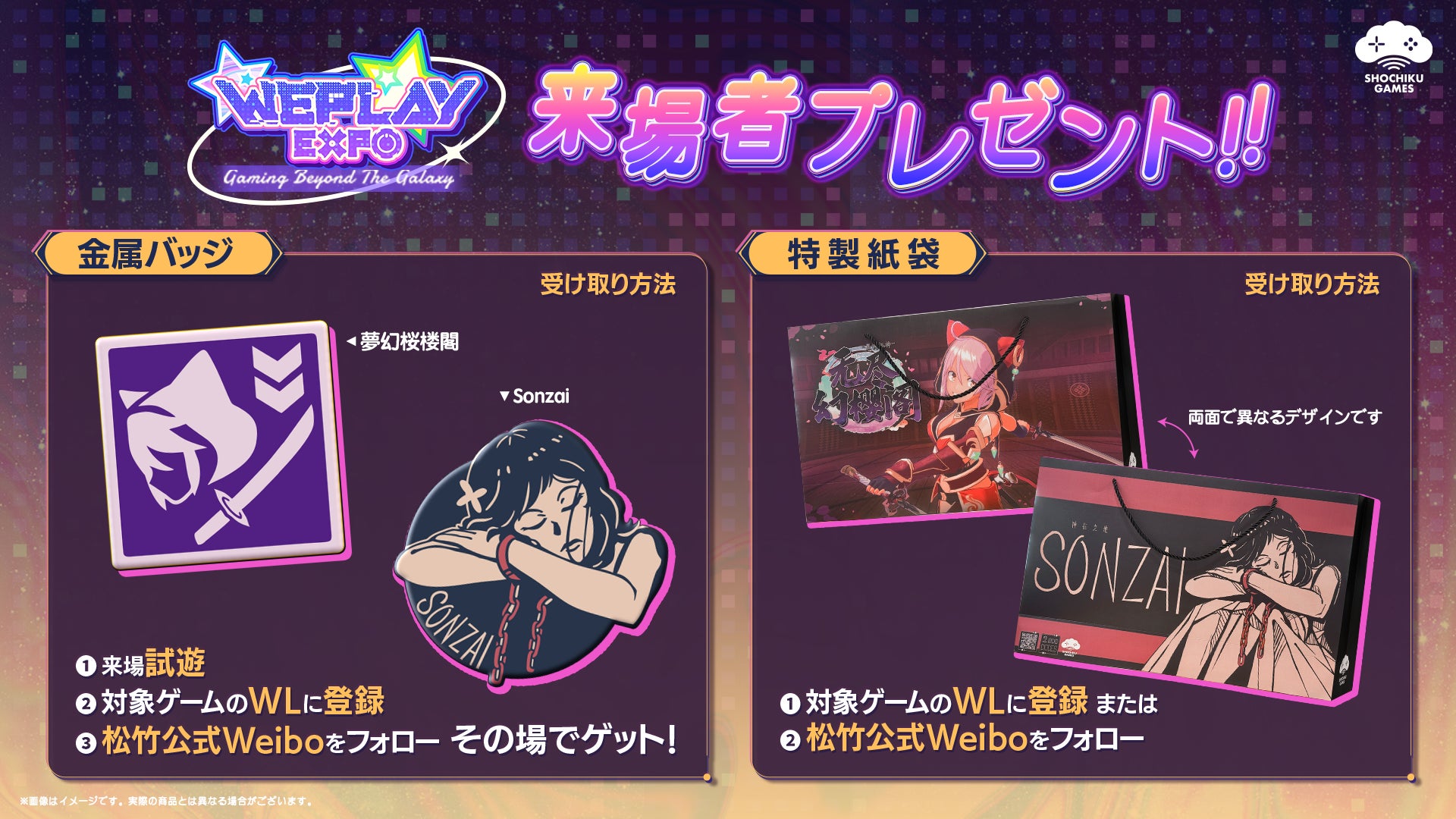WePlay主催のメタルバッジ収集イベントに参加!ブースにて対象ゲームをプレイ・対象ゲームのウィッシュリスト登録・松竹公式Weiboをフォローでイベント限定バッジをプレゼントいたします。