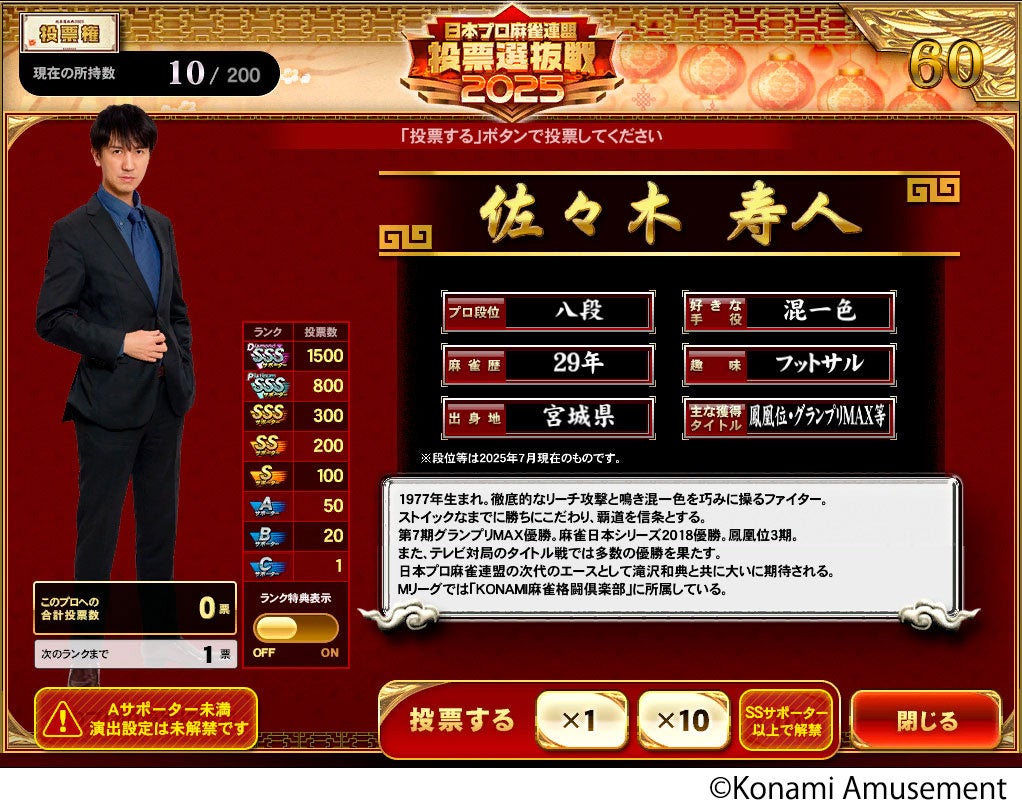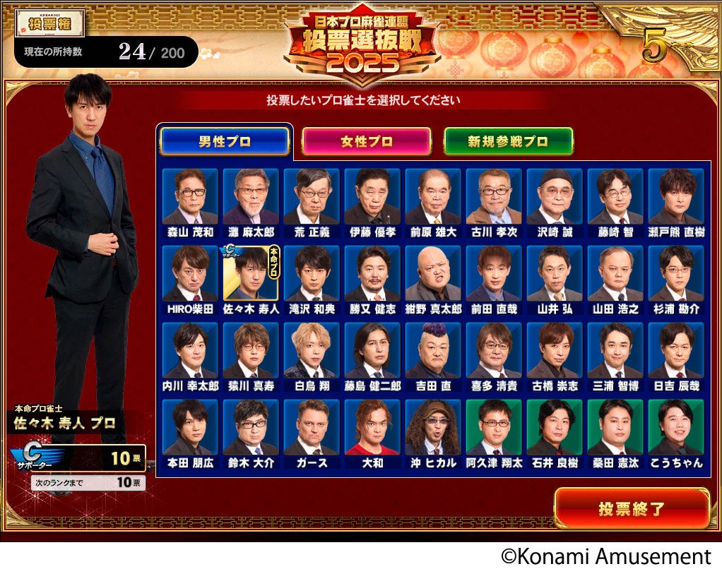 プロ雀士を撃破するたびに「投票権」を入手できます。