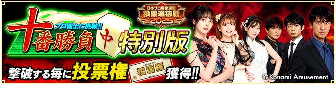 株式会社コナミアミューズメントは、『麻雀格闘倶楽部 Extreme(マージャンファイトクラブ エクストリーム)』(アーケード版およびコナステ版)にて、ゲーム内イベント「日本プロ麻雀連盟 投票選抜戦2025」を7月10日(木)から開催することをお知らせします。