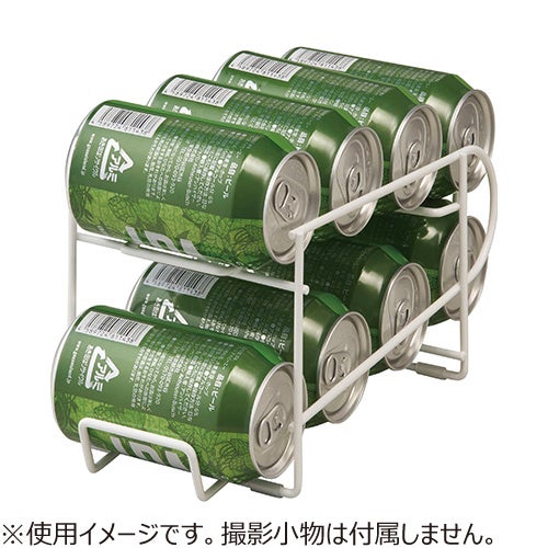 上から入れて手前から取り出す缶ストッカーです。冷蔵庫の中でごちゃごちゃ場所を取る缶ドリンクをスッキリ収納できます。押し出し式なので、冷えた缶から順番に飲めます。