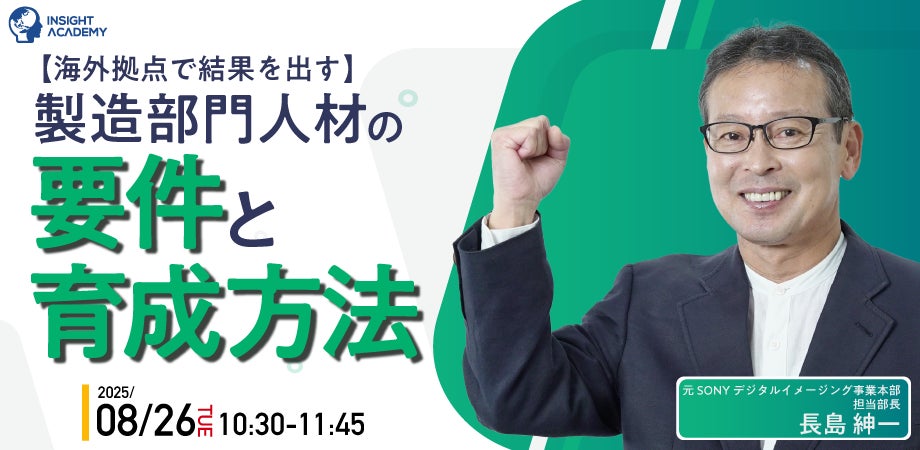 グローバル⼈材育成・研修業を⼿掛けるインサイトアカデミー株式会社(本社:東京都港区新橋、代表:金 珍燮)は、無料webセミナー「【海外拠点で結果を出す】製造部門人材の要件と育成方法」を2025年8月26日(火)10:30より開催します。