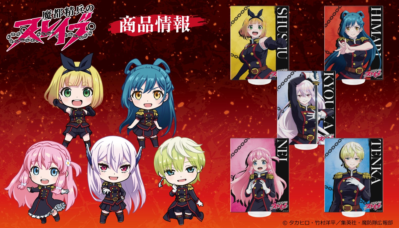 TVアニメ「魔都精兵のスレイブ」キャラクターラバーマット、アクリルブロマイド(スタンド付)、ぷにこれ!キーホルダー(スタンド付)の受注を開始!