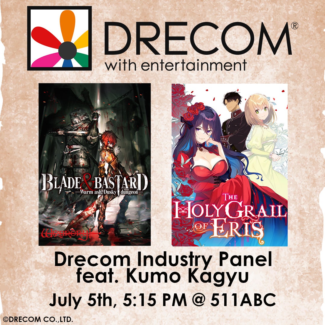 自社パネル「Drecom Industry Panel」には『ブレイド&バスタード』の原作者・蝸牛くもや、所属プロデューサーが登壇予定。