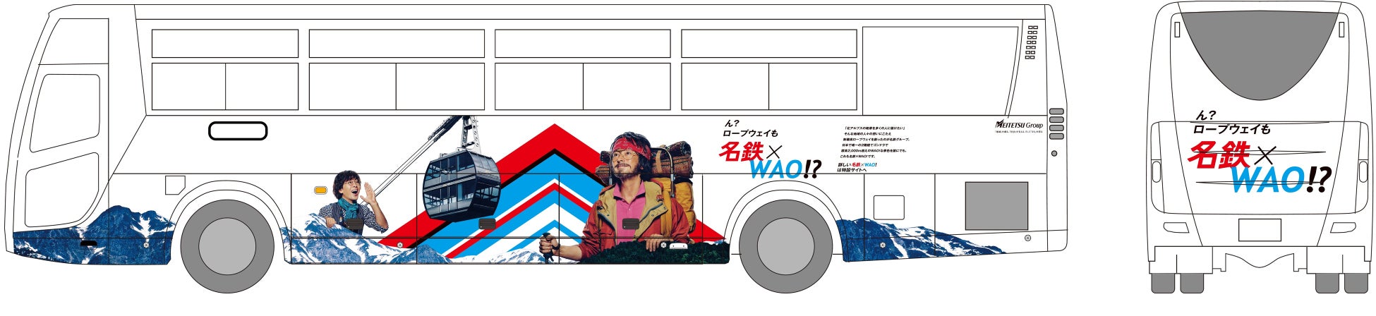 名鉄グループの濃飛乗合自動車と岐阜乗合自動車の車両を「名鉄×WAO!」デザインでラッピングします。(各社2両)