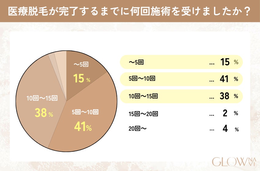 医療脱毛の施術回数に関して、最も回答が多く集まったのは「5回~10回」(41%)で、複数回の施術を想定している人が多い結果となりました。