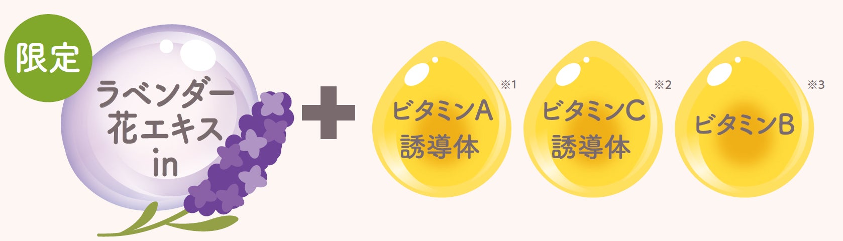 限定品だけのラベンダー花エキス(保湿成分)を含む、うるうるスキンケア成分配合。