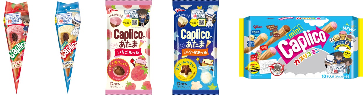 商品名:ジャイアントカプリコ<いちご>、ジャイアントカプリコ<ミルク>、カプリコのあたま <いちごあつめ>、カプリコのあたま <ミルクの星あつめ>、カプリコミニ大袋