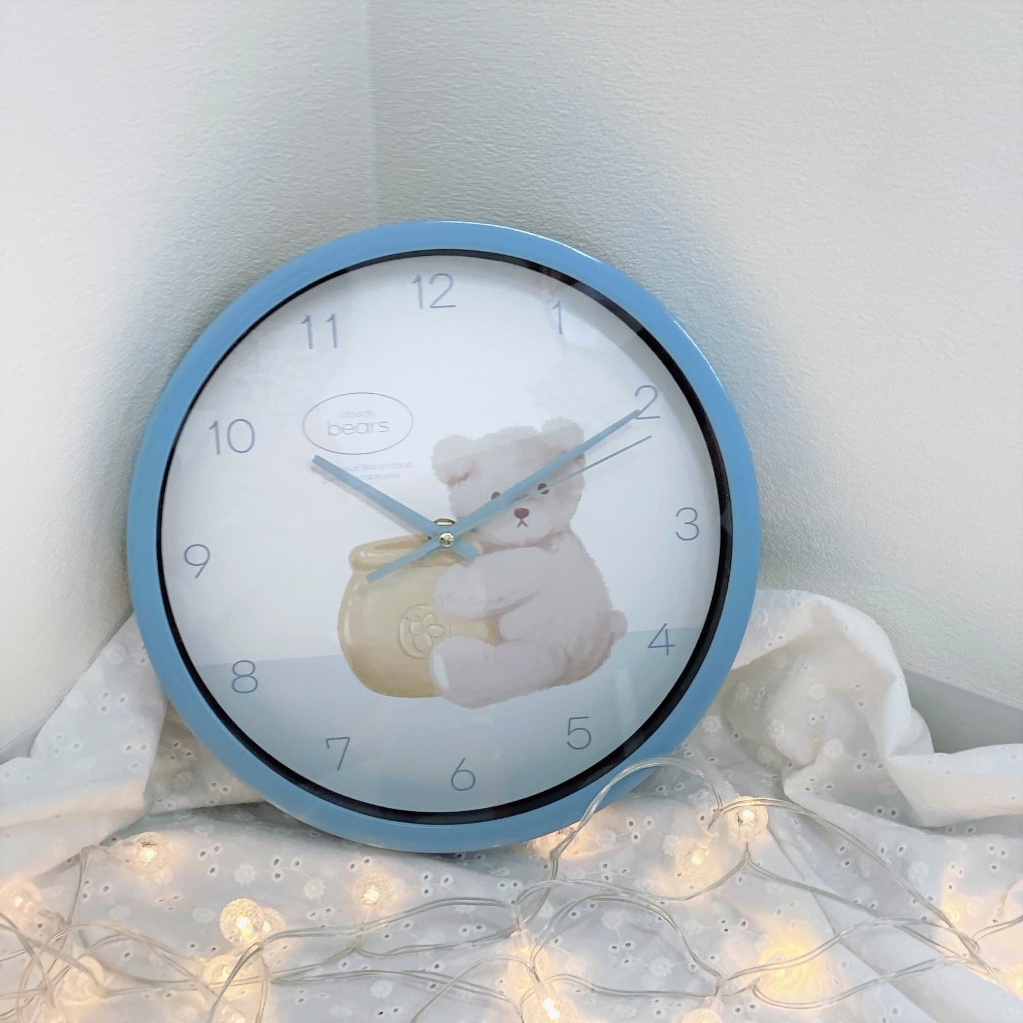 お部屋がおしゃれな空間に早変わり!淡いブルーとふわふわくまさんに癒される掛け時計。
