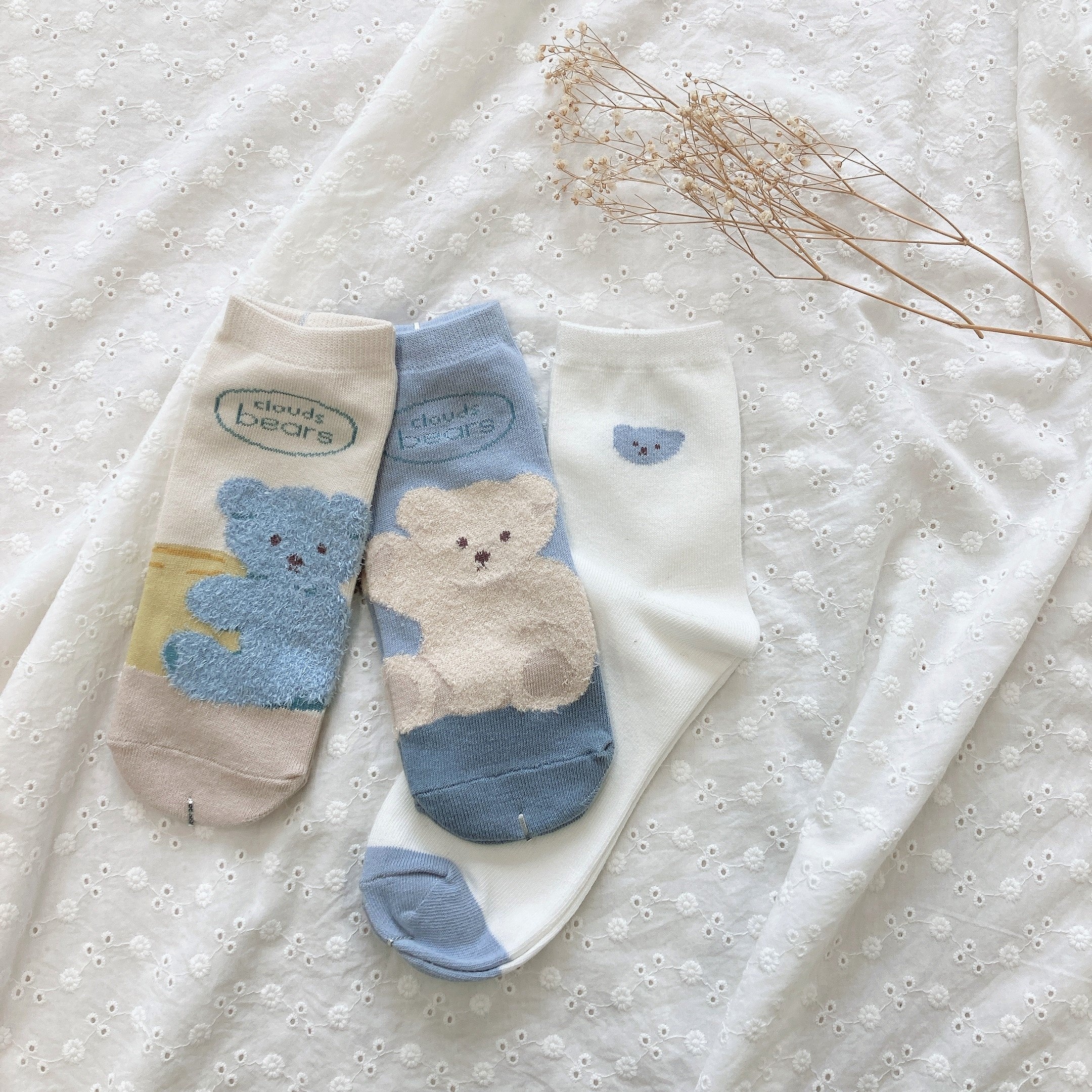 『clouds bears』は韓国やSNSで流行中のゆるめのくまをモチーフにしたサンキューマートオリジナル雑貨シリーズの新作です。今年の1月に発売した冬仕様のくまさん雑貨『Fluffy Bears』(ふわふわのくま)が大変多くのご好評を頂いたことから、オールシーズンで使用頂けるアイテムも展開したいと、くすみブルーをベースにした『clouds bears』を企画しました。シンプルなワンポイントデザインや小さめの総柄のデザインを多く取り入れ、中高生だけでなく大人もおしゃれに持ち歩けるアイテムに仕上げています。