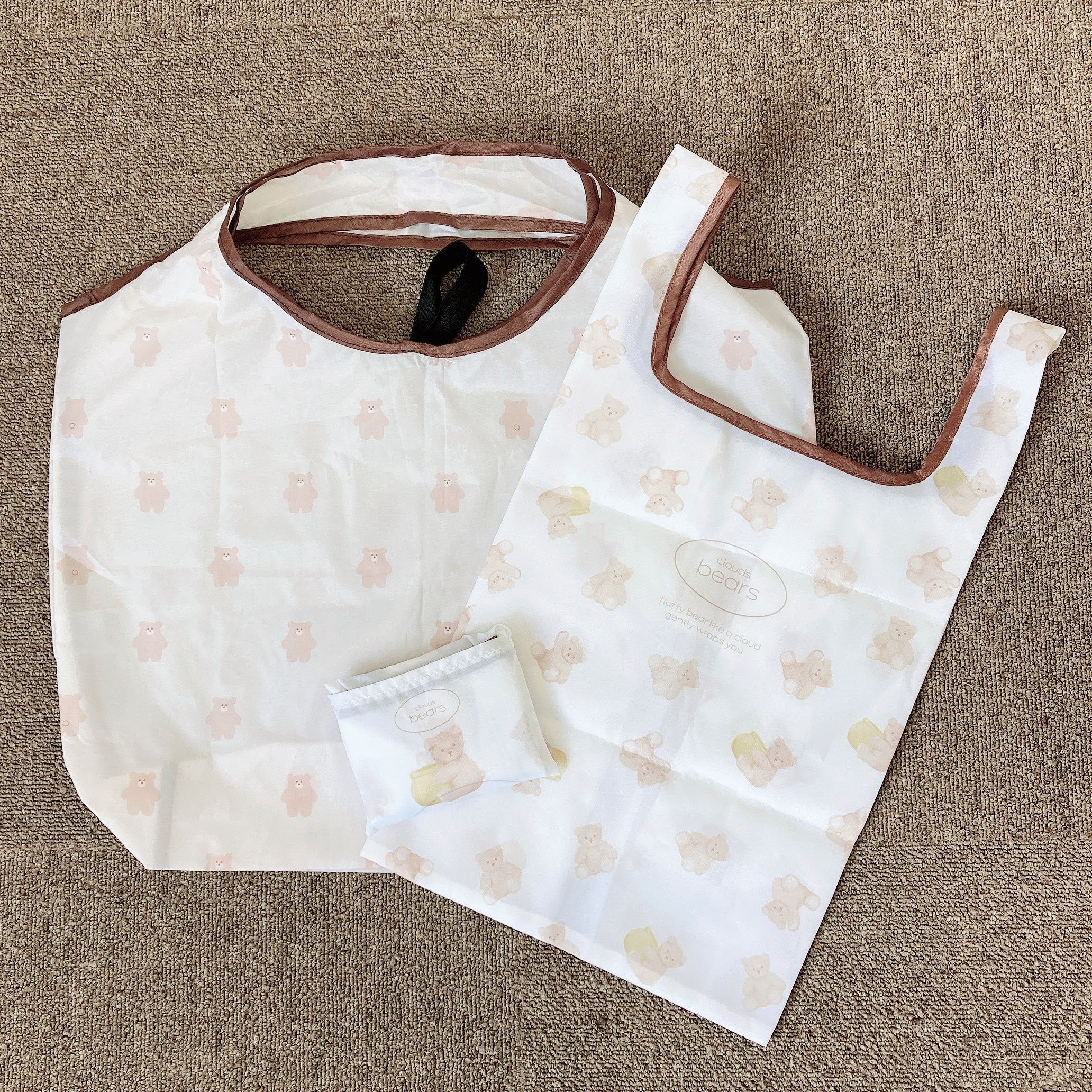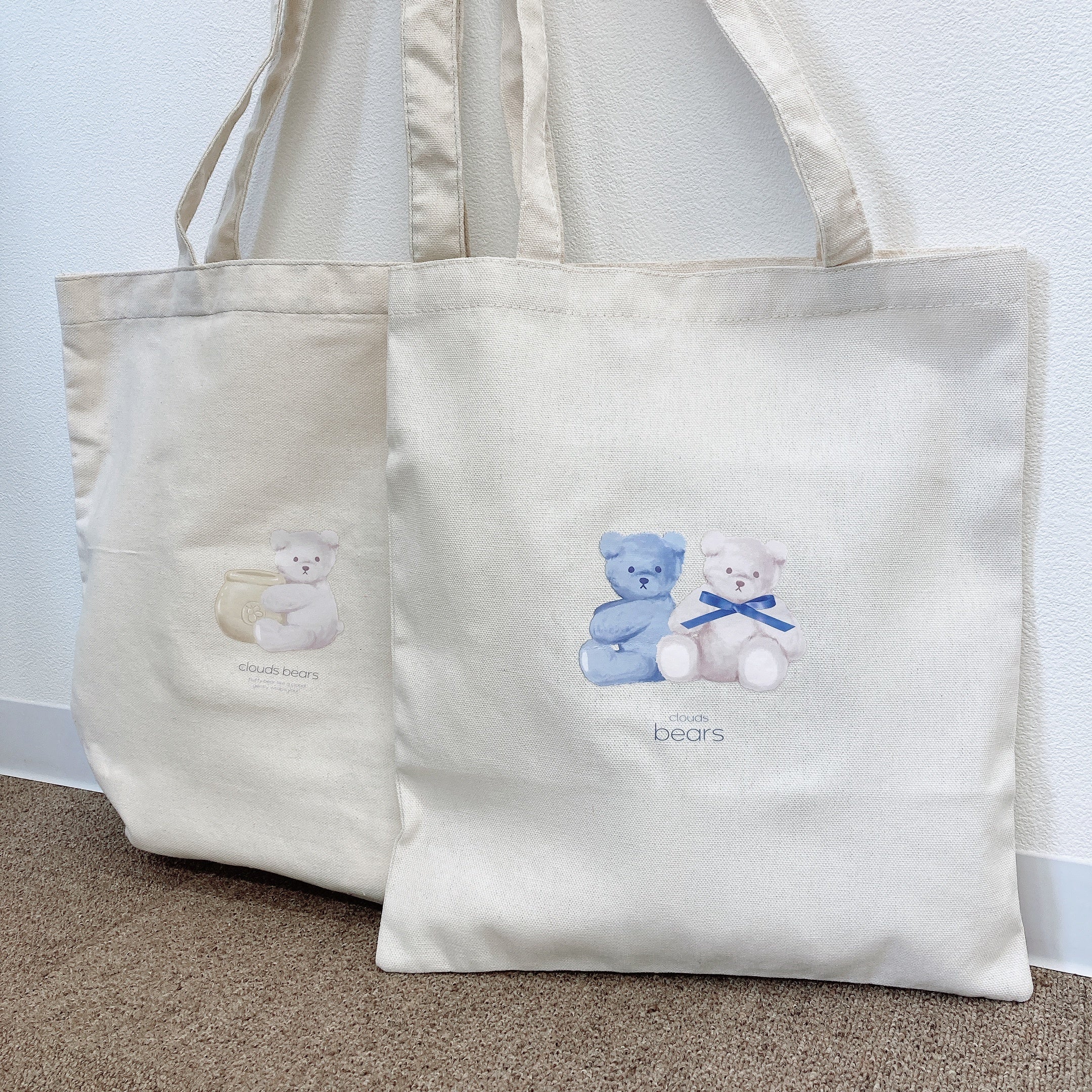 ワンポイントに配置されたくまさんがさりげなく可愛い、トートバッグやエコバッグ。