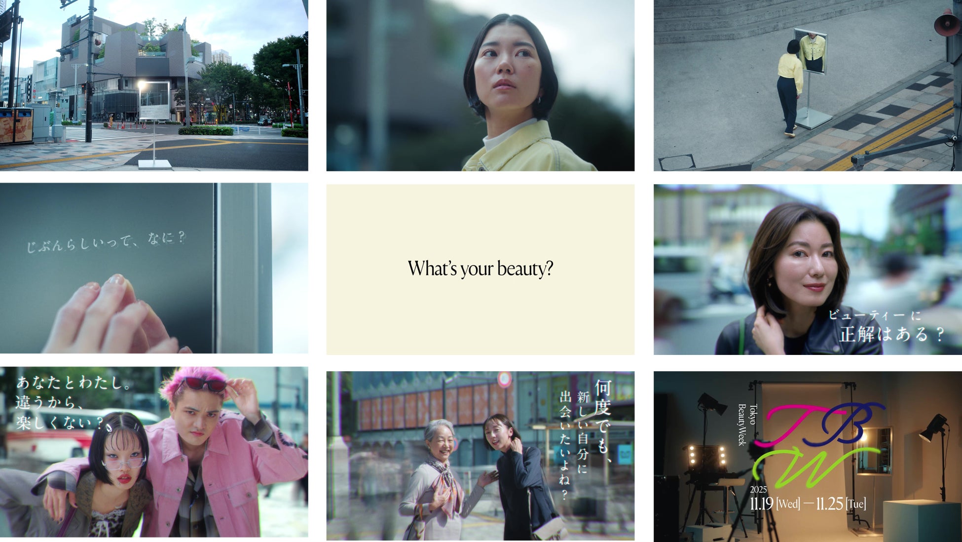 原宿・表参道という多様な美意識が交差する街で、鏡に映った人々がふと自分を見つめ、ビューティーについて考える瞬間を切り取りました。ビューティーに関するさまざまな問いかけを軸に、鏡を通して自分を客観視するところから内面的な変化を表現。映像後半のカメラを前に自分らしさを表現する様子には、TBWの会場にも登場するTokyo Beauty Studioで、より多くの方にこのイベントで同様の体験をして頂きたいという想いを込めています。