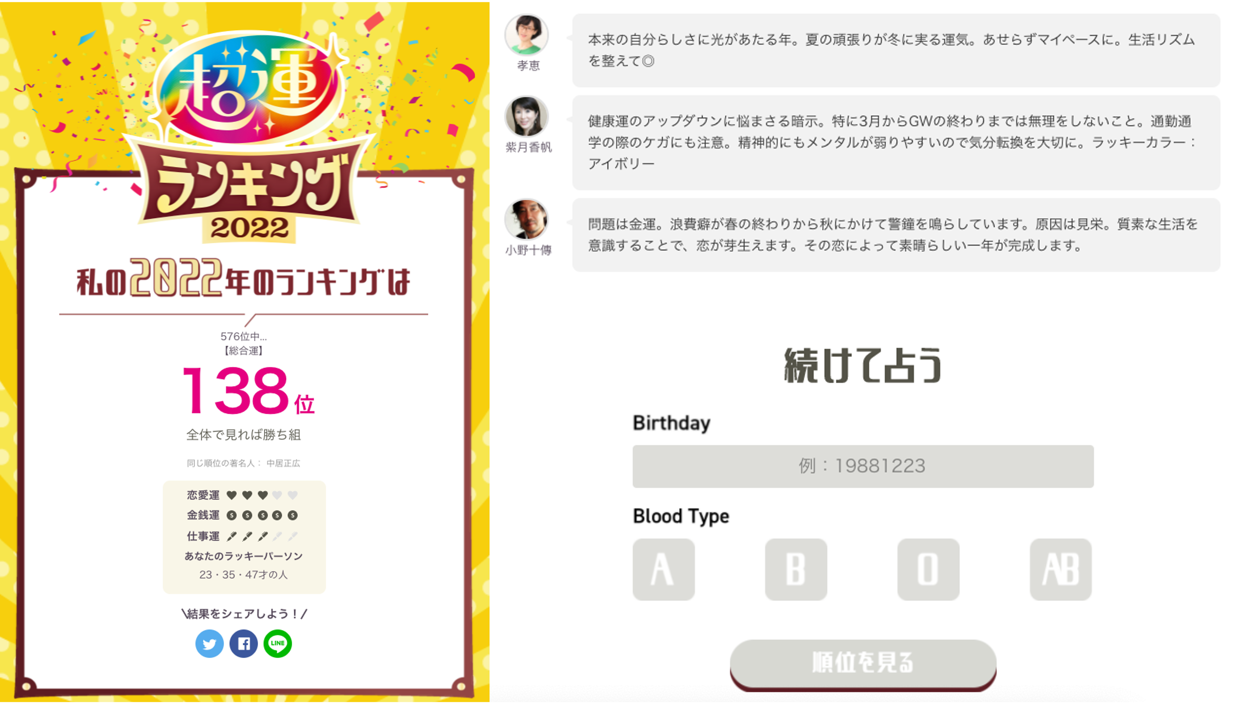 同時に、2022年最も運の良い著名人がわかる「芸能界2022年最強ランキング【超運】TOP5」、様々なテーマで著名人の運勢を占う「著名人ランキング」も発表しております。