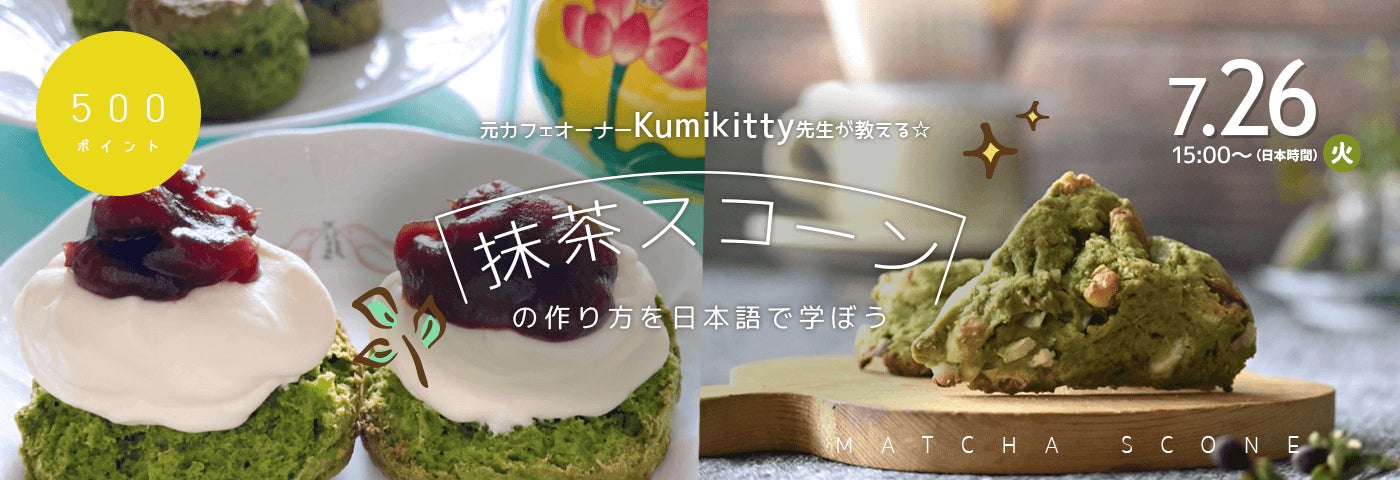 受付特設ページ:https://cafetalk.com/campaign/2022/seminar/cooking/matcha-scones-by-Kumikitty/?lang=ja