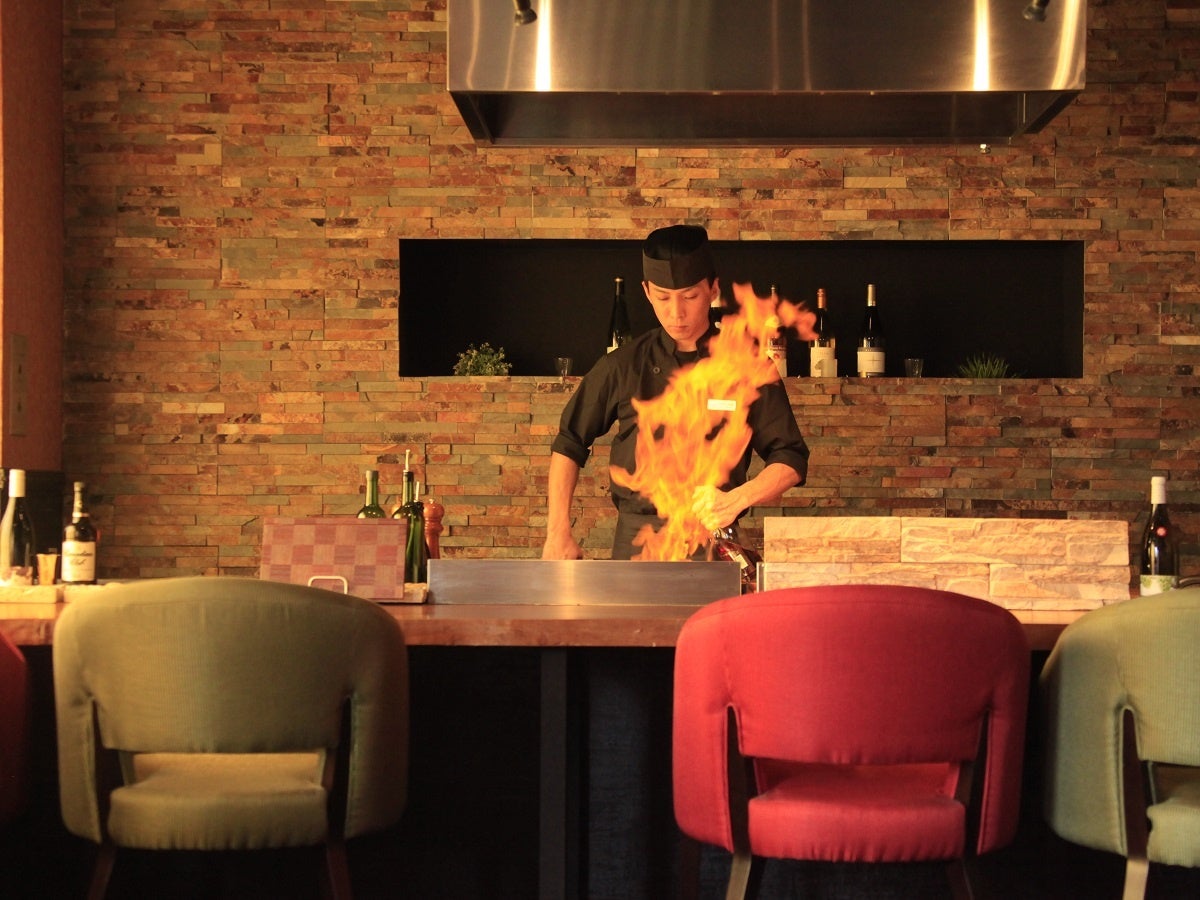 ご夕食は、メインの国産牛ステーキをライブキッチンでお客様のお好みの焼き加減で仕上げる当館人気No.1の基本会席を堪能いただけます。