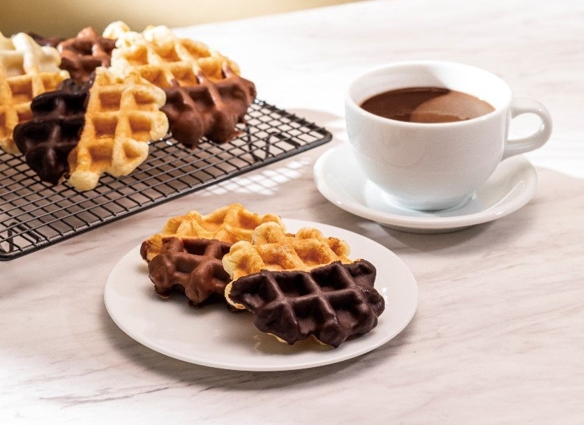ゴディバのミルクチョコレートをディップしたベルギーワッフル。