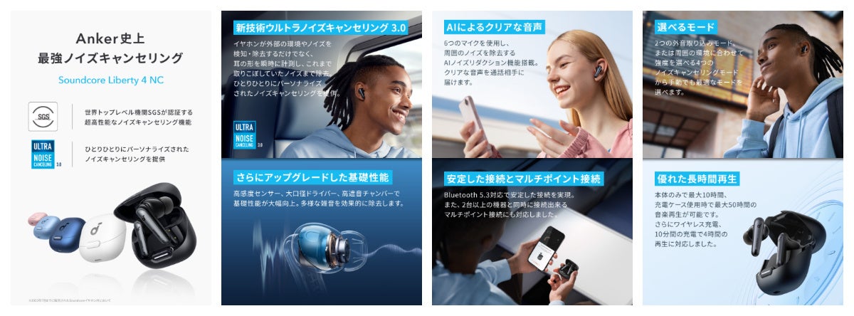 【Soundcore】Anker史上最強のノイズキャンセリングで最高の没入感を!完全ワイヤレスイヤホン「Soundcore Liberty 4 NC」を予約販売開始