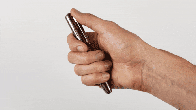 グレード5のチタン合金を素材に使用したノック式油性マーカーです。キャップがないため、シャープペンシルやボールペンのようにスムーズに書き出せます。先端には小さなトラップドアが取り付けられており、インクの乾燥もしっかりと防止することができます。