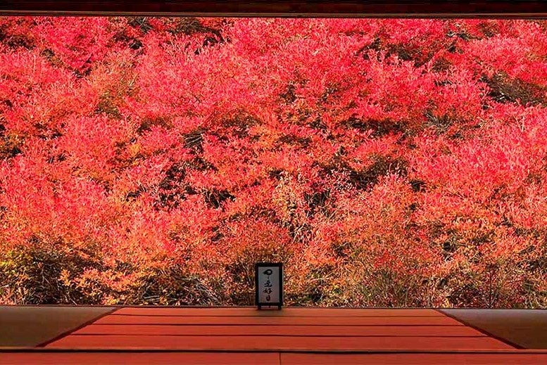 宿から車で約50分、兵庫県豊岡市にある但馬安国寺では、紅葉の時期になると期間限定で座敷越しのドウダンツツジが一般公開されます。例年、紅葉の見ごろは11月中旬。まるで1枚の絵画を眺めているかのような芸術的な紅葉の風景を味わうことができます。