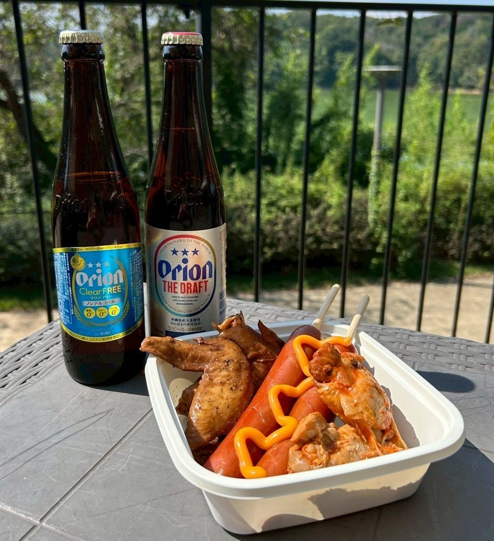 ヴァイキングの宴のように、仲間と一緒に骨付き肉とビールで乾杯!お好きなオリオンビール2杯、骨付きチキン4個とチーズフランク2本の満腹セッ ト。