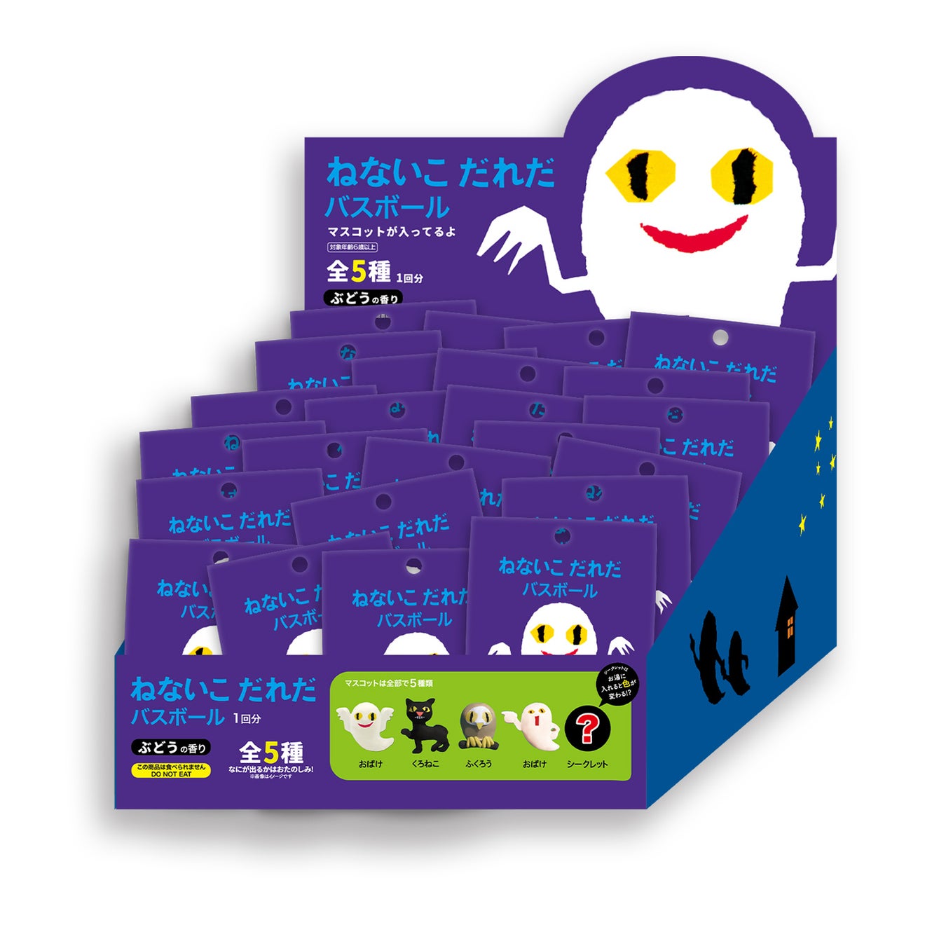紫色のバスボールから浮かび上がってくるのは絵本に登場するキャラクターマスコット。おばけ・くろねこ・ふくろうに加え、お湯に入れると色が変化するシークレットマスコットが追加になりました。