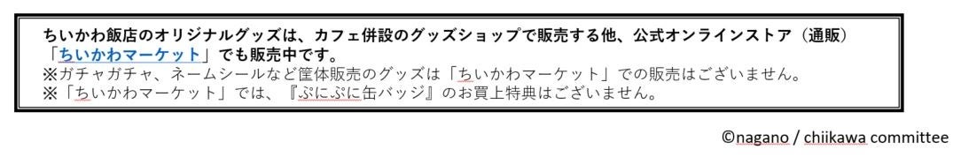 また、「ちいかわ飯店グッズショップ」は同期間中、仙台パルコ・吉祥寺パルコにてオープンいたします。